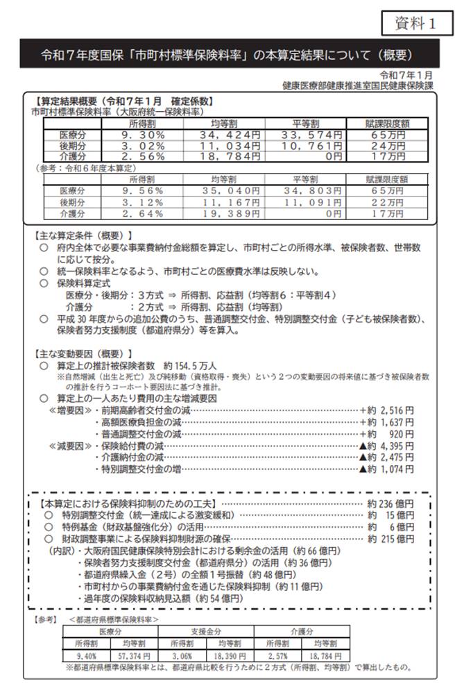 2025年度大阪府統一国保料本算定が公表されました(資料1と2は別紙)。全資料は大阪社保協ホームページにアップしていますのでご確認ください。