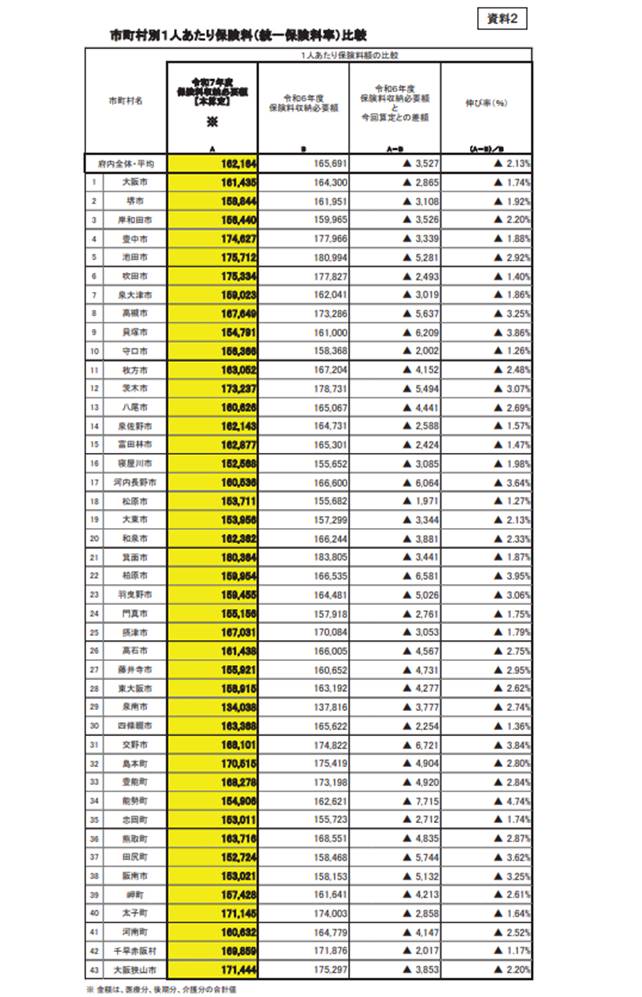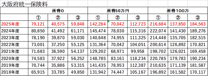 2025年度大阪府統一国保料公開〜2024年度より若干さがるも・・・・